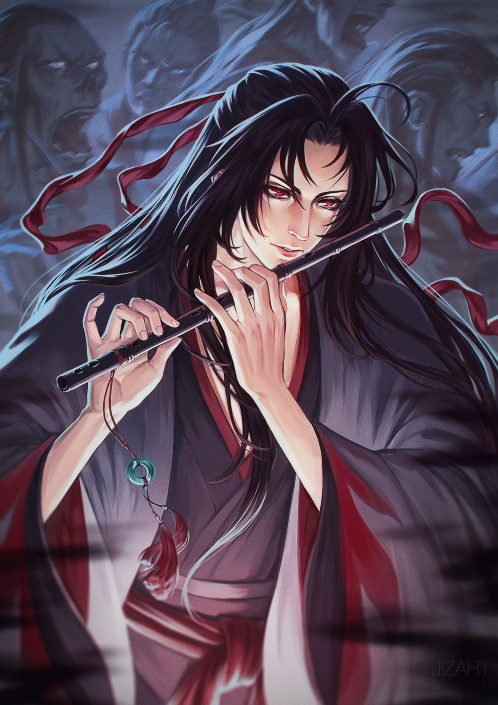 Внешность: 173 см || 75 кг Тёмно-фиолетовые длинные волосы, длина достигает икр, к концу цвет более светлый, фиалковые глаза. Фигуристая, обладательница широких бедер и большой груди, спортивное телосложение. В основном ходит в юбках, платьях, очень редко носит брюки, всегда ходит на каблуках. Есть родинка под глазом, при длительном нахождении на солнце на лице, зоне декольте и плечах появляются веснушки. На левом бедре и справа внизу живота есть шрамы от пулевых ранений, на спине, ближе к шее, есть татуировка в виде мигимитсу-домоэ (трактует для себя и других любопытных, как буддистский знак будущее и три части бытия – воображаемое, реальное, мнимое).